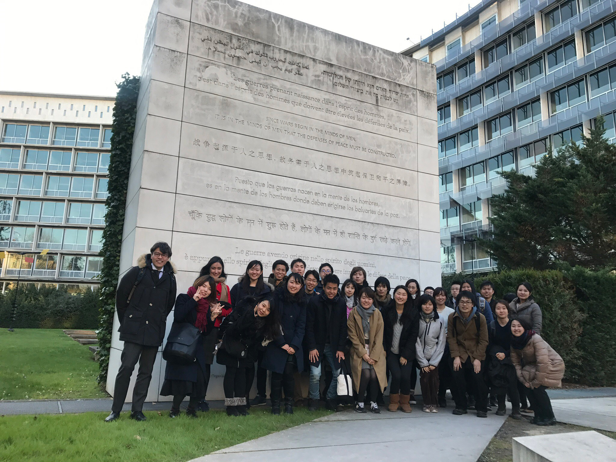 大学院学生10名と学部学生5名は、北村友人准教授と教職員の引率により、現地での3日間にわたるプログラムを通じてストックホルム大学の大学院学生たちと交流を深めました。1日目は、両校の紹介の後、ストックホルム大学のボランティア大学院学生の案内でキャンパスツアーと市内見学が実施されました。2日目は、ストックホルム大学の教職員同行のもと、2グループに分かれて現地小中学校の訪問見学を行いました。3日目の国際シンポジウムでは、午前に教員たちによるレクチャーが行われ、午後は両校の学生たちによる研究報告が行われました。夕刻には学内のファカルティ・クラブでレセプションが催され、両校の学生たちは交流を深めることができました。前年度に続き、ストックホルム大学と交流があり、フィンランドでは教員養成の分野で有名なユヴァスキュラ大学の教職員および学生も参加しました。その後、パリに移動してUNESCO(国際連合教育科学文化機関)とOECD(経済協力開発機構)を訪問し、職員の方から組織概要やプロジェクト、職員のキャリア等について説明を受けました。約一週間様々な経験を通じ「多様性をはぐくむ教育」について考え、理解を深める充実した研修となりました。